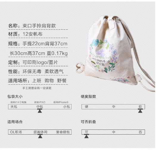 束口双肩背帆布袋 定制印logo购物袋 可折叠帆布手提袋 肩背手提